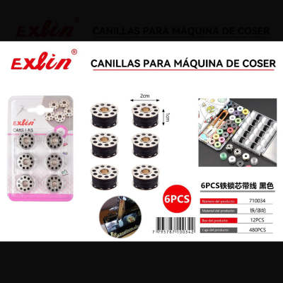 6pcs铁锁芯带线 黑色 canillas para maquina de coser,cilindros de metal con hilo negro x6