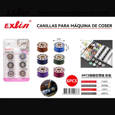 6pcs铁锁芯带线彩色 canillas para maquina de coser,cilindros de metal con hilo multicolor x6