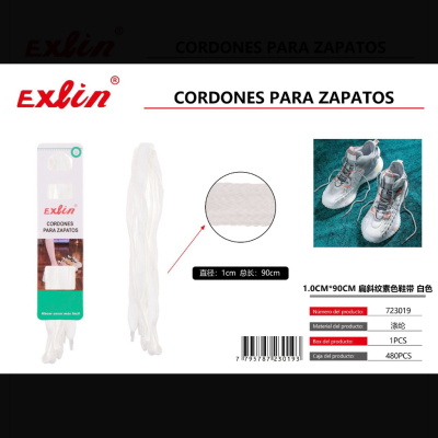 1.0CM*90CM 扁斜纹素色鞋带 白色 Cordones para zapatos 1,0 cm x 90 cm, planos con textura diagonal, color blanco