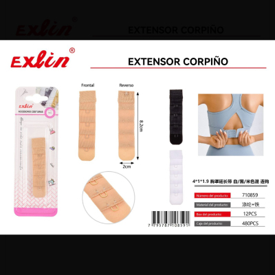 4*1*1.9 胸罩延长带 白/黑/米色混 连钩 Extensor corpifo 4x1x1,9 cm, blanco/negro/beige, ganchos unidos