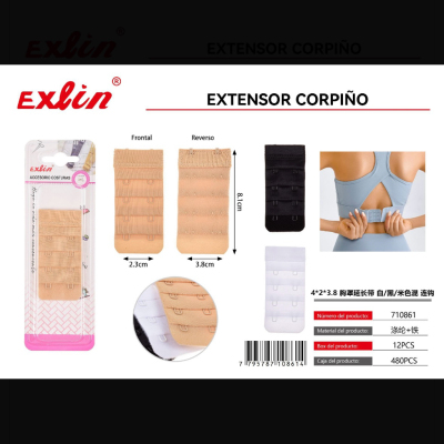 4*2*3.8 胸罩延长带 白/黑/米色混 连钩 Extensor corpifo 4x2x3,8 cm, blanco/negro/beige, ganchos unidos