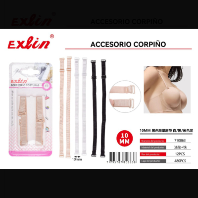 10mm 黑色胸罩肩带 白/黑/米色混 Accesorio corpino 10mm,negro, blanco/negro/beige