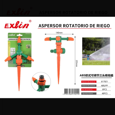 洒水器ABS欧式可调节三头喷地插 aspersor rotatorio de riego, ABS, estilo europeo, 3 boquillas ajustables, con est...