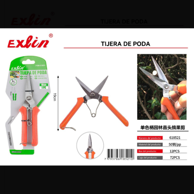 18cm单色(绿色)柄园林直头摘果剪 tijera de poda, 18cm,mango verde, cabeza recta, para jardinería y cosecha