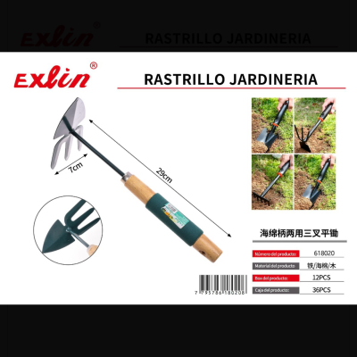 海绵柄两用三叉平锄 32cm Rastrillo de jardineria 2 en 1 con azada de 3 puntas y mango de esponja, 32 cm