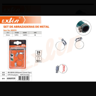 喉夹镀锌(边款8mm)/25mm/3pcs abrazadera de manguera galvanizada (banda de 8 mm), 25 mm, 3 piezas