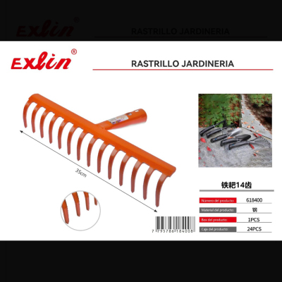 钢耙14 齿 rastrillo de jardinería, 14 dientes, acero