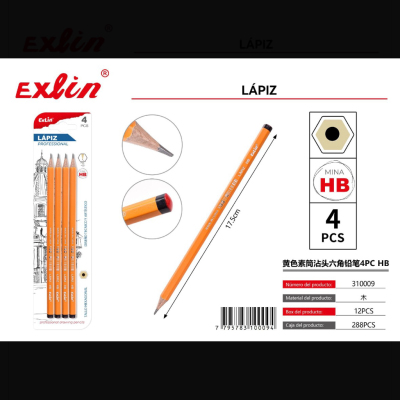黄色素筒沾头六角铅笔4pc HB lapiz hexagonal amarillo HB x4