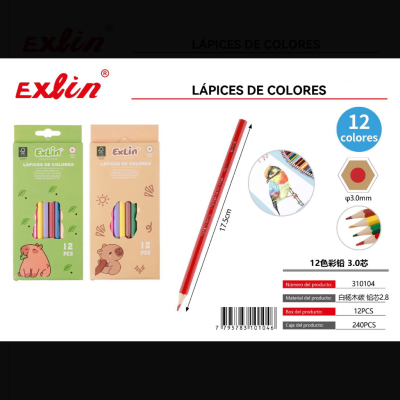 12色彩铅 3.0芯 lapices de color 12 colores, mina 3,0mm ×12