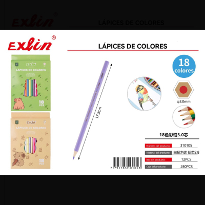 18色彩铅3.0芯lápices de color 18 colores, mina 3,0 mm x18