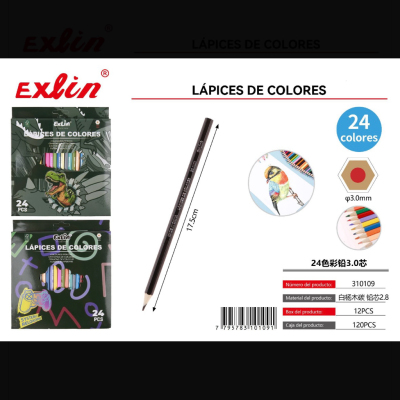 24色彩铅3.0芯 lapices de color 24 colores, mina 3,0 mm x24
