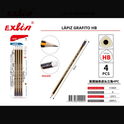 黄黑抽条皮头三角 4pc lapiz de grafito HB, 4 pieza
