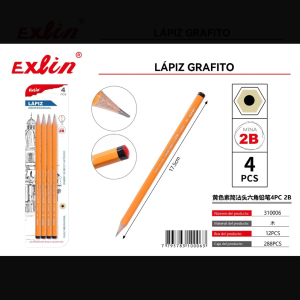 黄色素筒沾头六角铅笔4pc B lapiz de grafito HB, 4 pieza