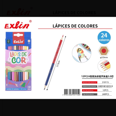 12pc24色双头彩铅汽车盒3.0芯 lapices de colores,24 colores, doble punta, 12 piezas, mina 3.0 mm